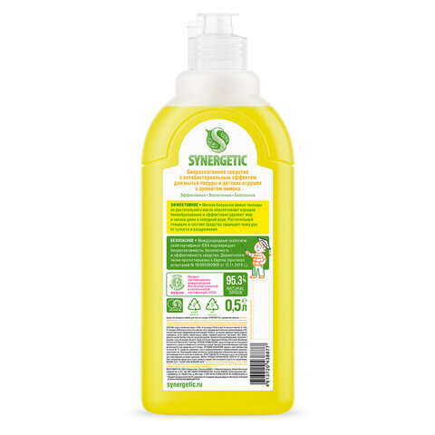 Гель для мытья посуды антибактериальный 500 мл, SYNERGETIC "Лимон", 103051