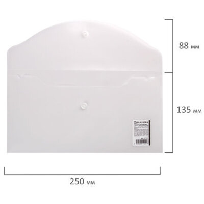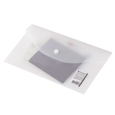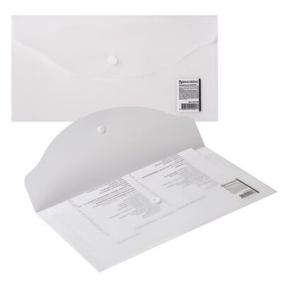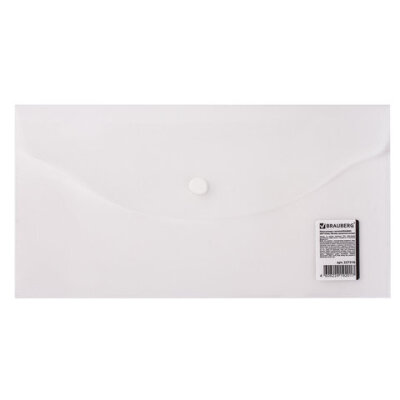 Папка-конверт с кнопкой МАЛОГО ФОРМАТА (250х135 мм), матовая прозрачная, 0,18 мм, BRAUBERG, 227316