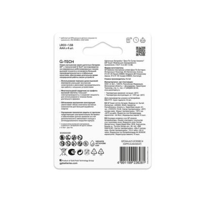 Батарейки КОМПЛЕКТ 4 шт., GP Super G-Tech, AAA (LR03, 24А), алкалиновые, мизинчиковые, блистер, 24A-2