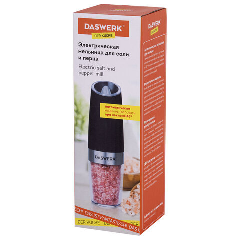 • Гравитационная электрическая мельница DASWERK подходит для специй, морской соли, перца и различных трав. Это устройство станет вашим незаменимым помощником на кухне.