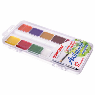 Краски акварельные школьные ОФИСМАГ, 12 цветов, медовые, пластиковая коробка, 191562