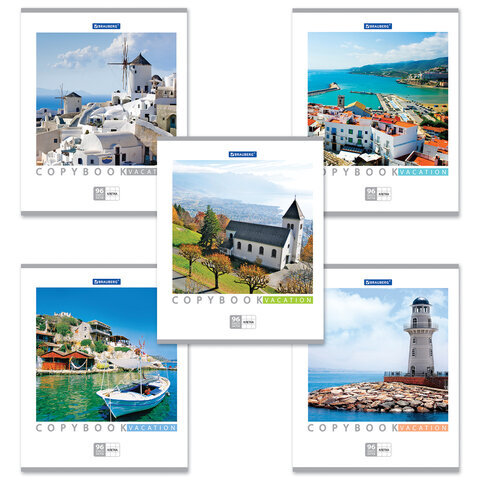 Тетрадь А5, 96 л., BRAUBERG, скоба, клетка, обложка картон, КАНИКУЛЫ, 401847