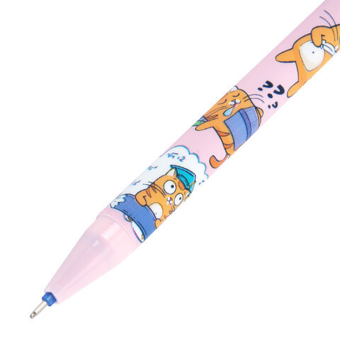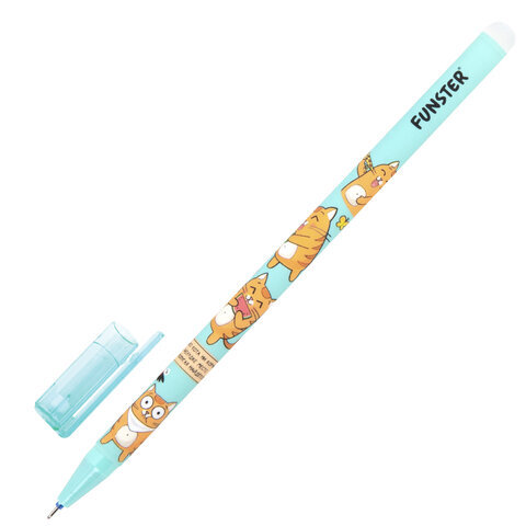 Ручка стираемая гелевая с принтом FUNSTER (ФАНСТЕР) "КОТ-ЭНТУЗИАСТ", СИНЯЯ, корпус ассорти, игольчатый наконеч. 0,5 мм, линия 0,35 мм 144414