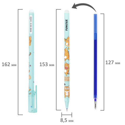 Стираемая гелевая ручка FUNSTER "КОТ-ЭНТУЗИАСТ" – универсальный помощник для ведения аккуратных записей за счет обесцвечивающихся термочернил и специального ластика, позволяющего вносить корректировки в текст сразу после написания.