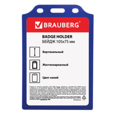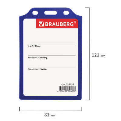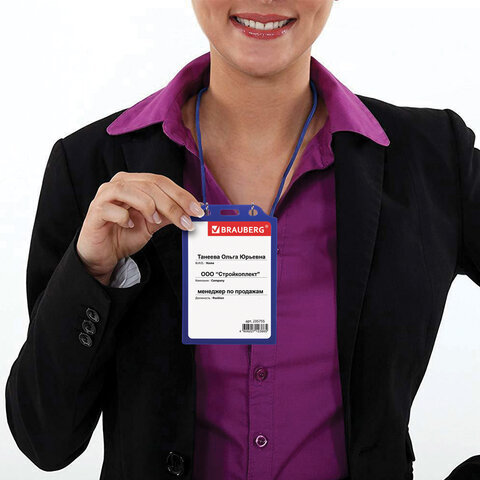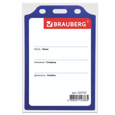Вертикальный бейдж BRAUBERG для именной карточки предназначен для идентификации сотрудников в компаниях, а также на семинарах, тренингах, презентациях и других мероприятиях.