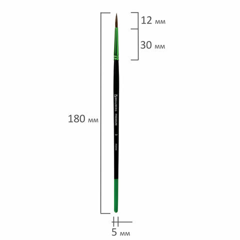 Кисть из ворса пони № 3, BRAUBERG PREMIUM, 200982