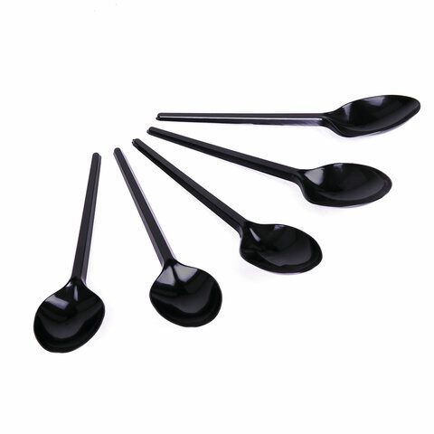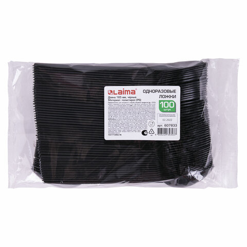 Ложка столовая одноразовая пластиковая 165 мм, черная, КОМПЛЕКТ 100 шт., СТАНДАРТ, LAIMA, 607833