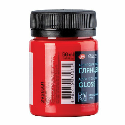 Краска акриловая глянцевая "Декола", банка 50 мл, красная, Невская Палитра, 2928331