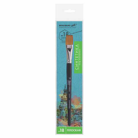 Художественная профессиональная синтетическая кисть BRAUBERG ART "CLASSIC" № 18 предназначена для работы с акварелью, с масляными красками и другими материалами для живописи.