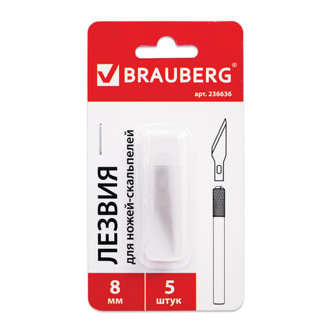 Лезвия для макетных ножей (скальпелей) 8 мм BRAUBERG, КОМПЛЕКТ 5 шт., блистер, 236636