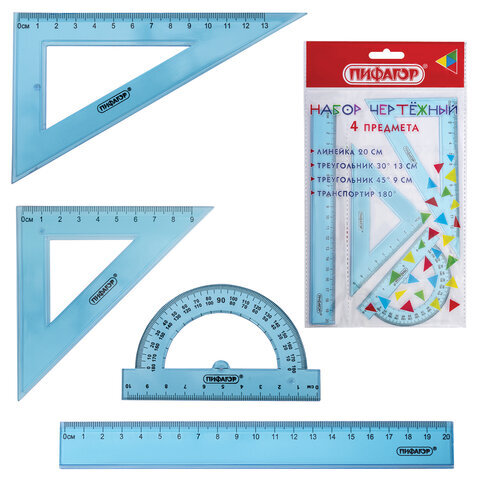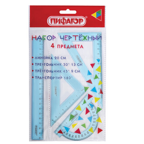 Набор чертежный геометрический ПИФАГОР предназначен для выполнения чертежных работ.