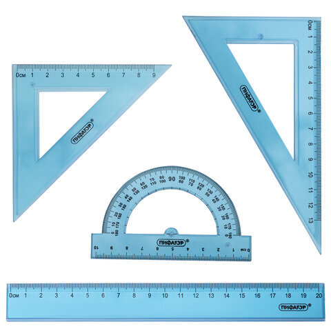 Набор чертежный ПИФАГОР (линейка 20 см, 2 треугольника, транспортир), тонированный, европодвес, 210854