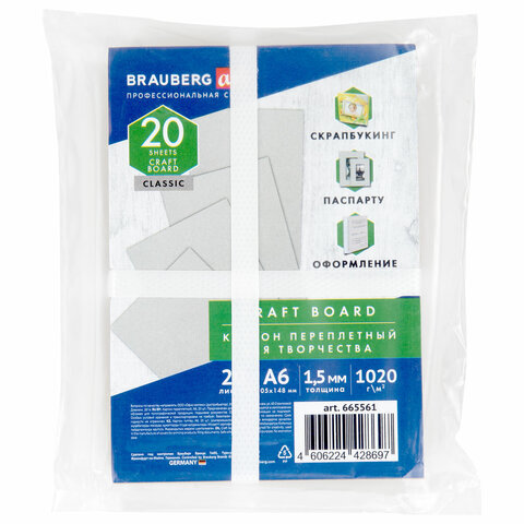 Картон переплетный, толщина 1,5 мм, А6 (105х148 мм), КОМПЛЕКТ 20 шт., BRAUBERG ART, 665561