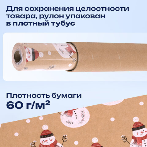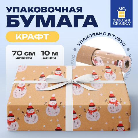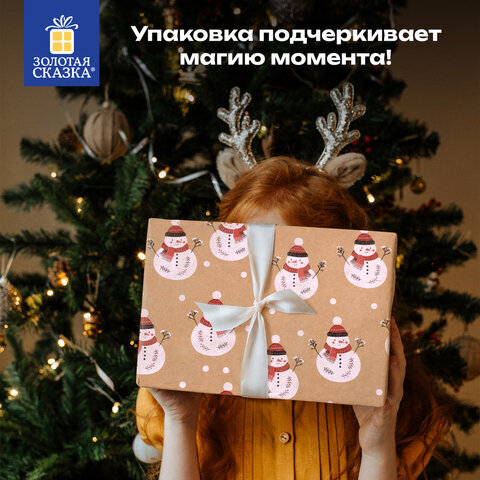 Новогодняя упаковочная бумага "Snowman" ЗОЛОТАЯ СКАЗКА отлично подходит для упаковки подарков, а также для рукоделия, декора и других дизайнерских решений.