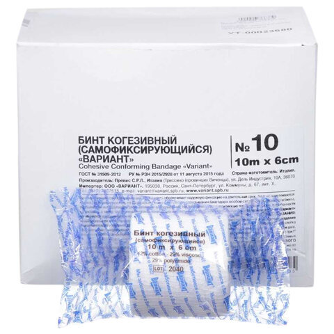 Бинт эластичный самофиксирующийся 10 м х 6 см, белый, КОМПЛЕКТ 10 шт., "ВАРИАНТ"