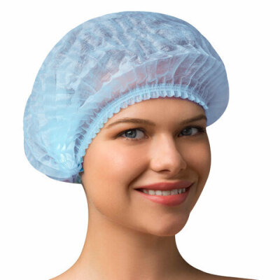 Шапочка-берет Шарлотта "Плиссе" голубая, КОМПЛЕКТ 125 шт., спанбонд 15 г/м2, ГЕКСА