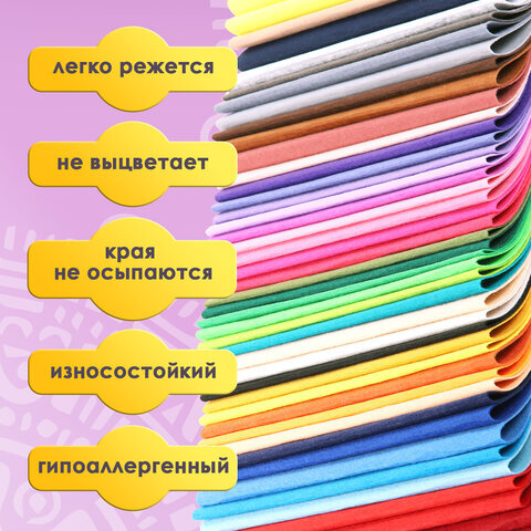 Цветной фетр ОСТРОВ СОКРОВИЩ предназначен для создания ярких творческих поделок дома, в школе или в детском саду. Используется для создания аппликаций и вышивки, легко режется и приклеивается на ровную поверхность.