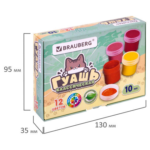 Гуашь BRAUBERG "МИЛЫЕ КОТЫ", 12 цветов по 10 мл, 192640