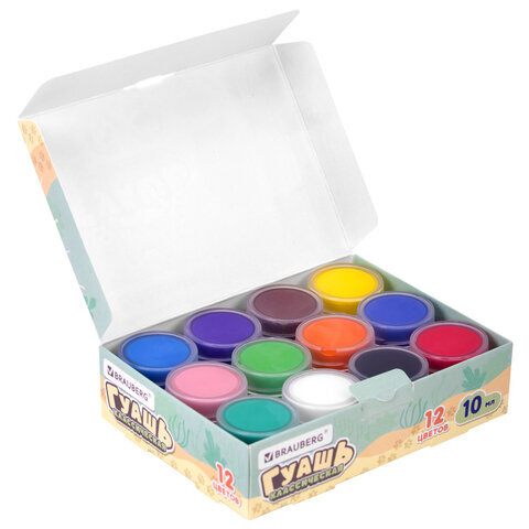 Гуашь BRAUBERG поможет создать юным художникам первые шедевры. Хорошо наносится на бумагу, картон, дерево, стекло, керамику.