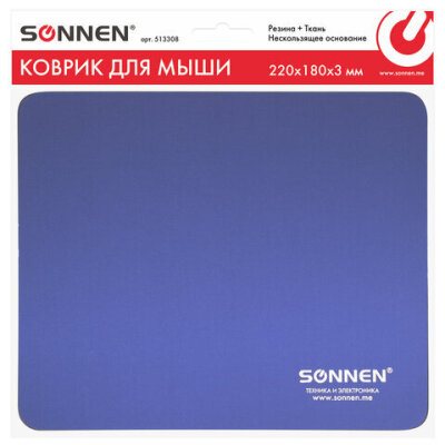 Коврик для мыши SONNEN "BLUE", резина + ткань, 220х180х3 мм, 513308