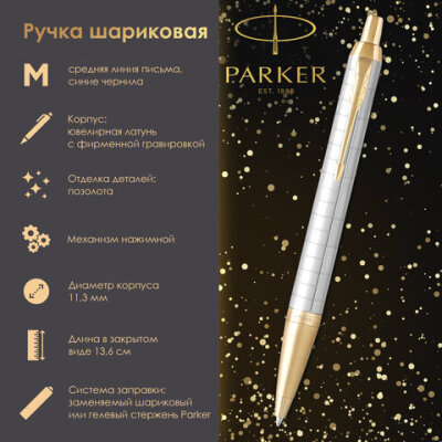 Ручка шариковая PARKER "IM Premium Pearl GT", жемчужный лак, позолота, синяя, 2143643