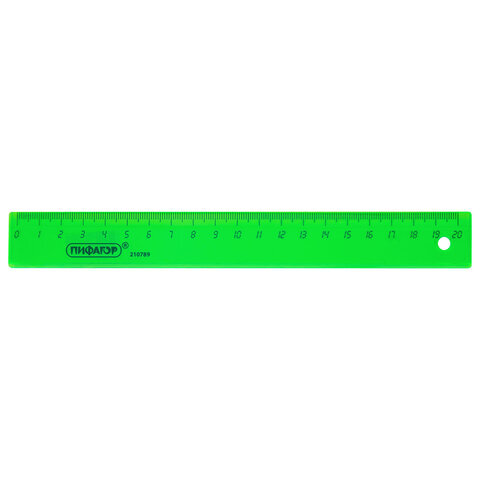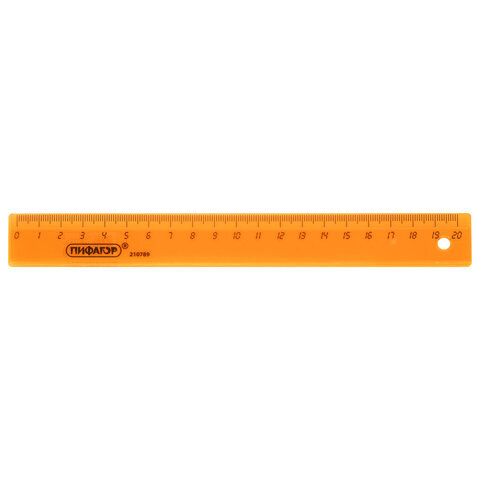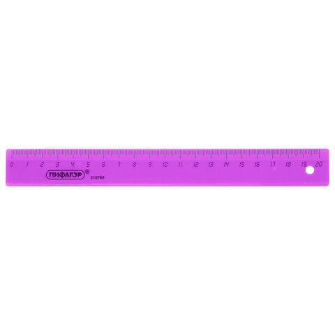 Линейка пластиковая 20 см ПИФАГОР, прозрачная, неоновая, ассорти, 210789