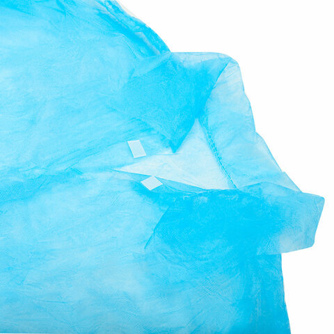 Халат одноразовый голубой на липучках КОМПЛЕКТ 10 шт., XXL, 56-58 размер, 110 см, рукав на резинке, 30 г/м2, ОПТИТРЕЙД