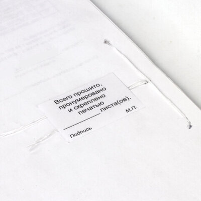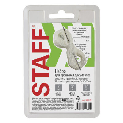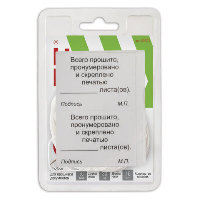 | Состав набора | игла, наклейки "Прошито, пронумеровано", нить для прошивки |