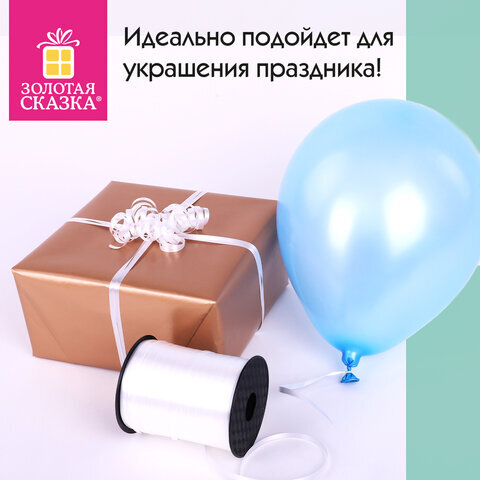 Лента упаковочная декоративная для шаров и подарков, 5 мм х 500 м, белая, ЗОЛОТАЯ СКАЗКА, 591808