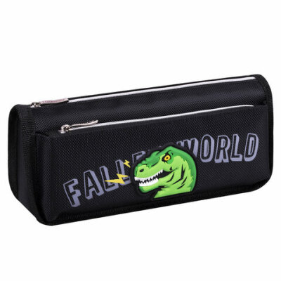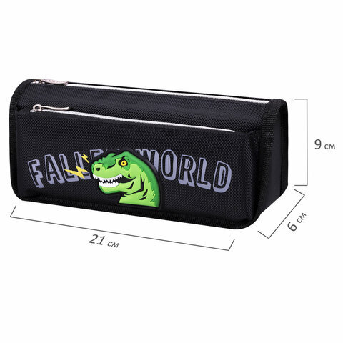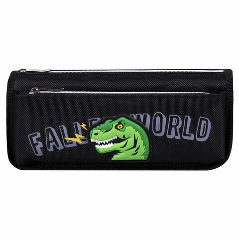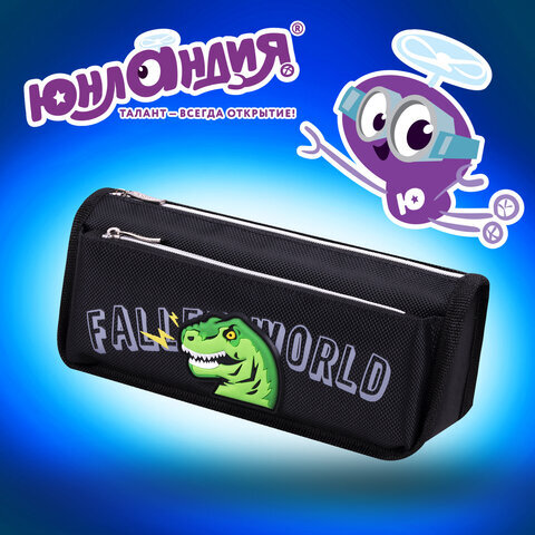 Пенал мягкий ЮНЛАНДИЯ, 2 отделения, полиэстер, "Dino doom", черный, 21х9х6 см, 271574