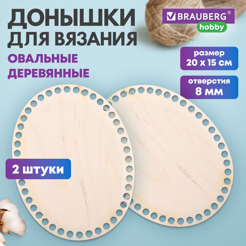 Донышки деревянные для вязания овальные, 2 шт., 20х15 см, BRAUBERG HOBBY, 665319