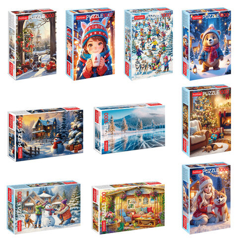 Пазл картонный 1000 элементов АССОРТИ, 10 дизайнов, 480х680 мм, HATBER