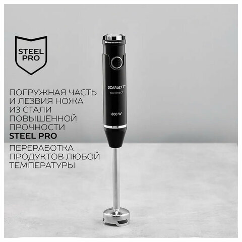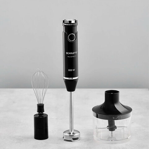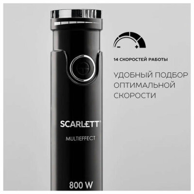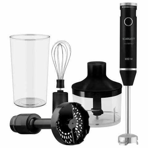 Блендер погружной SCARLETT SC-HB42M49, 800Вт, 14 скоростей, 4 насадки, стакан, черный
