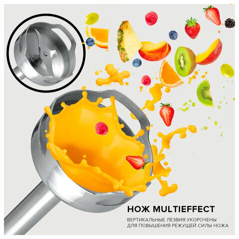 • Блендер SCARLETT SC-HB42M49 – стильный и функциональный прибор, который станет незаменимым помощником на вашей кухне. С его помощью вы сможете быстро и легко приготовить разнообразные блюда: от супов и соусов до муссов и коктейлей.
