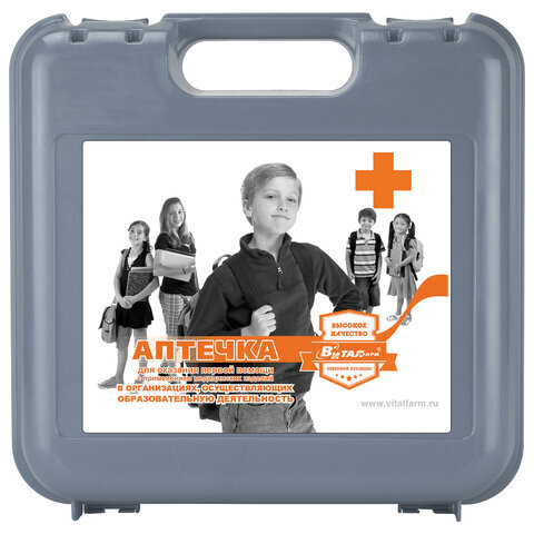 Аптечка для детских и учебных учреждений ВИТАЛФАРМ предназначена для оказания неотложной медицинской помощи вне медицинских учреждений.