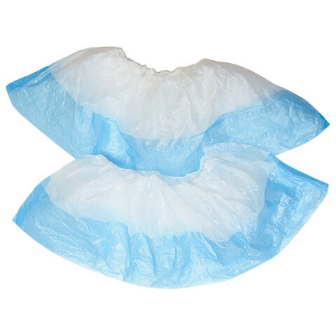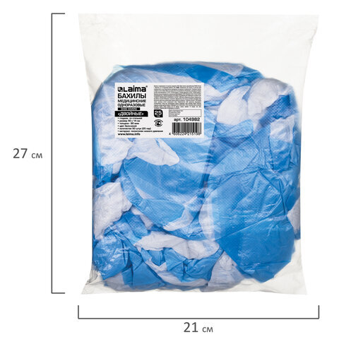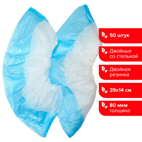 Бахилы КОМПЛЕКТ 50 штук (25 пар), ДВОЙНЫЕ (со стелькой), 40х14 см, 80 мкм, 6,5 г, ПНД, LAIMA, 104982