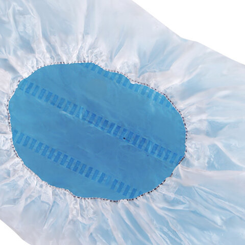 Одноразовые бахилы ЛАЙМА с двойной резинкой и двойным дном изготавливаются из полиэтилена, усиленного модифицированными добавками. В области подошвы используется двойной слой материала, придающий эффект антискольжения и повышающий прочность изделия.
