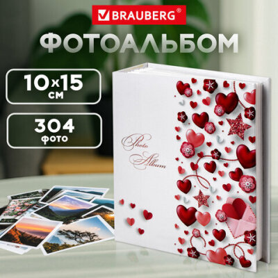 Фотоальбом BRAUBERG "Любовные истории" на 304 фото 10х15см, твердая обложка, термосклейка, 391159