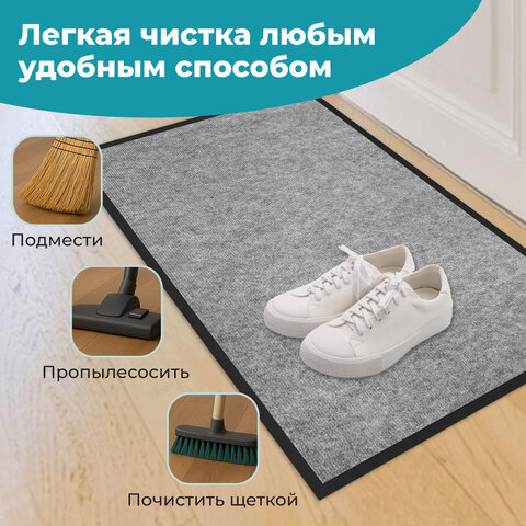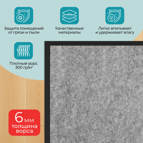 Коврик придверный 90х150 см, СЕРЫЙ, влаго-грязезащитный, 300 г/м2, мелкий рубчик, PRIMILA (ПРИМИЛА) STANDARD, 701021