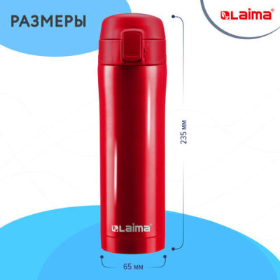 Термокружка LAIMA с двойной стальной стенкой изготовлена из нержавеющей стали марки 304 медицинского уровня. Сконструирована по вакуумной технологии.