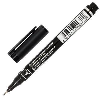 Маркер для CD и DVD BRAUBERG, ЧЕРНЫЙ, супертонкий металлический наконечник, 0,5 мм, 150512