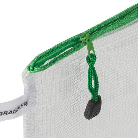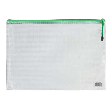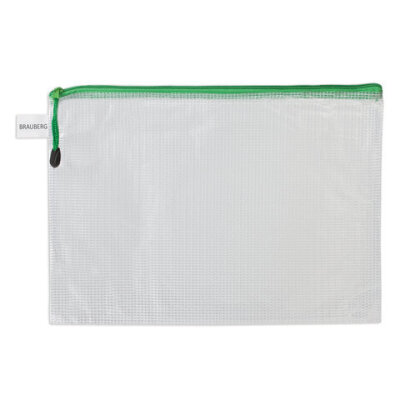 Папка-конверт на молнии А4 (335х243 мм), молния ассорти, ПВХ, сетка, прозрачная, 0,2 мм, BRAUBERG "Segment", 223886