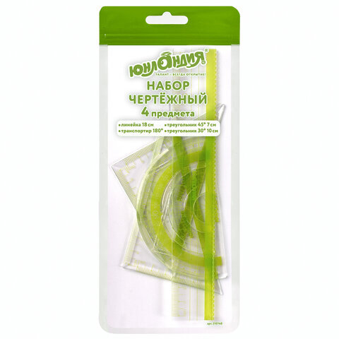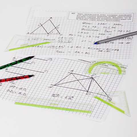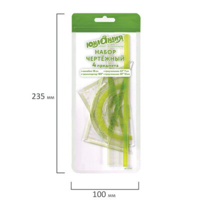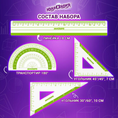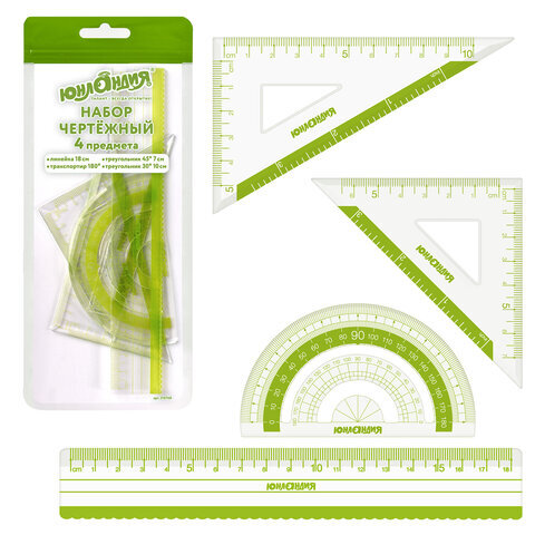 | Комплектация | большой треугольник, линейка, малый треугольник, транспортир |