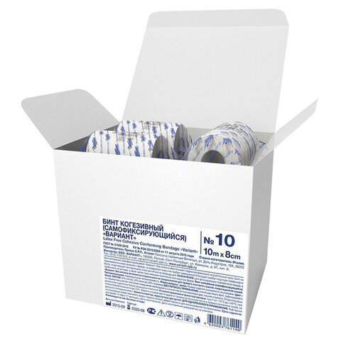 Бинт эластичный самофиксирующийся 10 м х 8 см, белый, КОМПЛЕКТ 10 шт., "ВАРИАНТ"