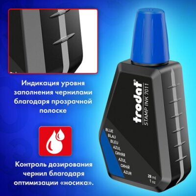 Краска штемпельная TRODAT, синяя, 28 мл, на водной основе, 7011с