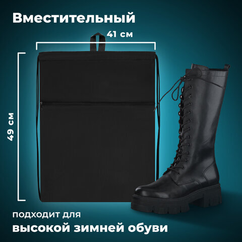 Мешок для обуви BRAUBERG БОЛЬШОЙ, с ручкой, карман на молнии, сетка, 49х41 см, "Total Black", 273453