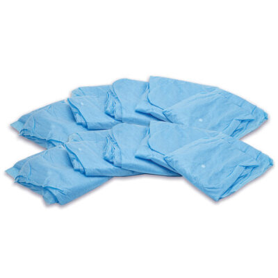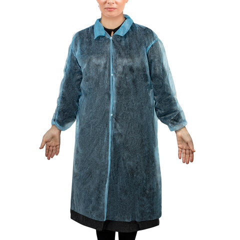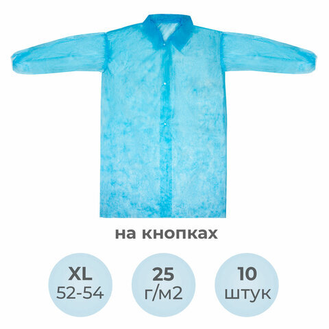 Халат одноразовый голубой на кнопках КОМПЛЕКТ 10 шт., XL, 52-54 размер, 110 см, рукав на резинке, 25 г/м2, СНАБЛАЙН