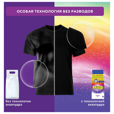 Эффективно отстирывает различные пятна, даже в холодной воде, а специальные отбеливатели, входящие в состав стирального порошка МИФ, сохраняют яркие цвета вещей. Содержит компоненты, помогающие защитить стиральную машину от накипи и известкового налета.