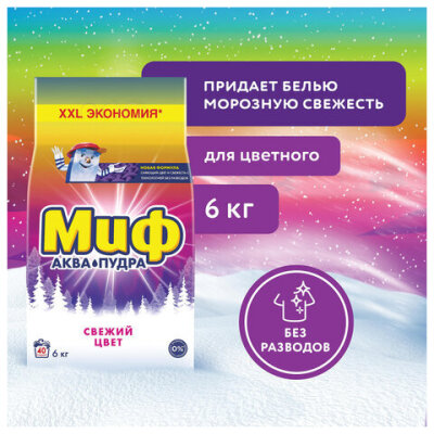 Стиральный порошок-автомат 6 кг, МИФ 3 в 1 "Свежий цвет"