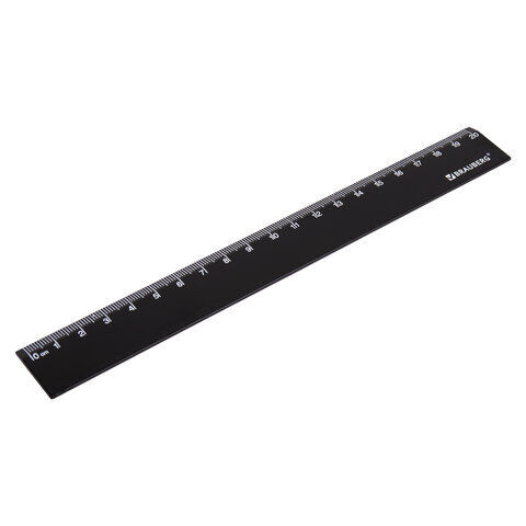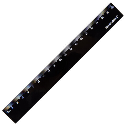 Линейка пластиковая 20 см, BRAUBERG, черная, пакет, 210775